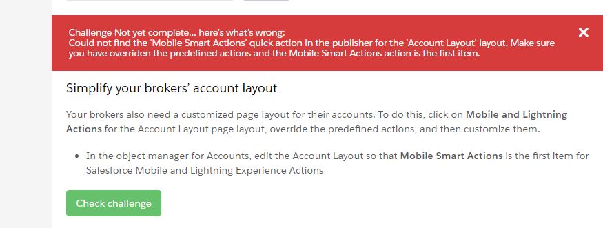 Your brokers also need a customized page layout for their accounts. To do this, click on Mobile and Lightning Actions for the Account Layout page layout, override the predefined actions, and then customize them.