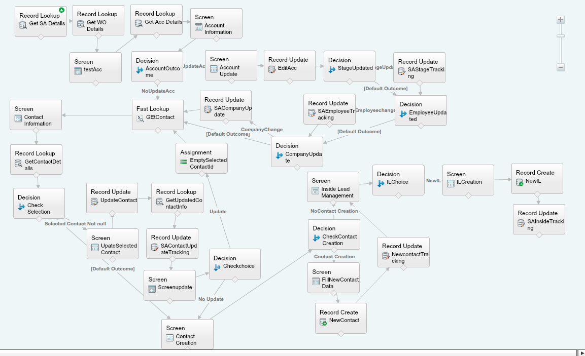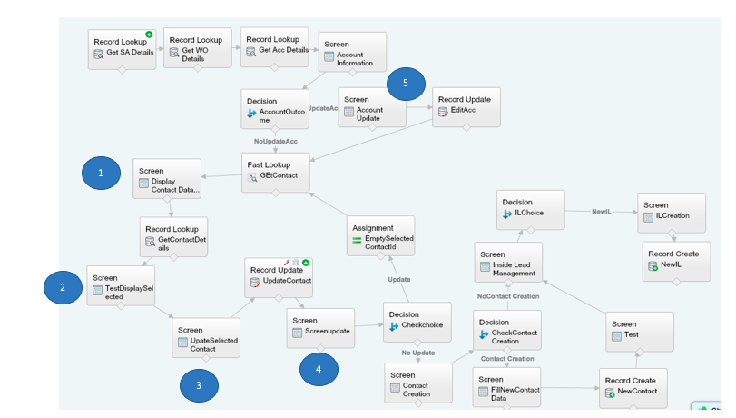 4- The technician than should display the contacts and he can decide if he wants to update existing contacts or create a new one. Trough a dynamic record choice I'm letting user to pick to contact to modify and I have a screen "Screen Update" where I'm asking if the user wants to update a second contact or not