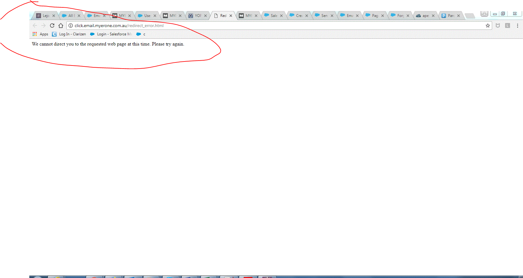 We have marekting cloud integration with salesforce. when we login through website we get an email with "verify link" . when we click on verify link we have to be redirected to next page . but we are getting redirect error like below. Can anyone respond or suggest the solution path for this kind of issues ASAP???