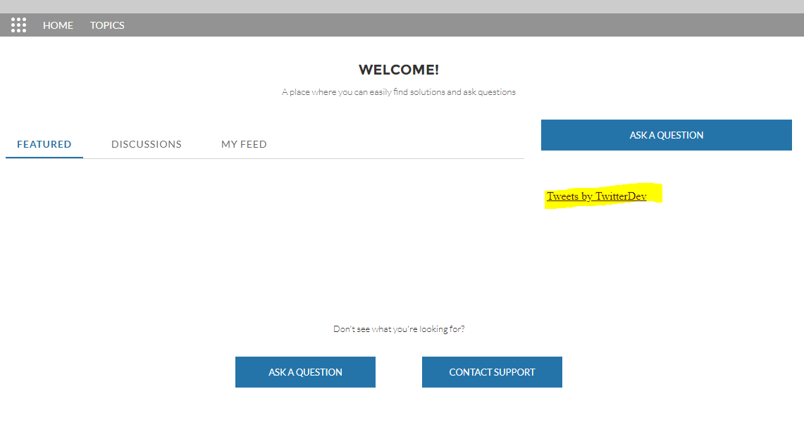 <a class="twitter-timeline" href="https://twitter.com/TwitterDev?ref_src=twsrc%5Etfw">Tweets by TwitterDev</a>