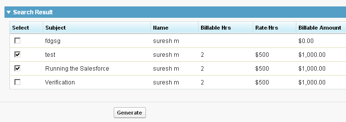 I wants to sum the billable amount for checked rows only when clicking generate button.