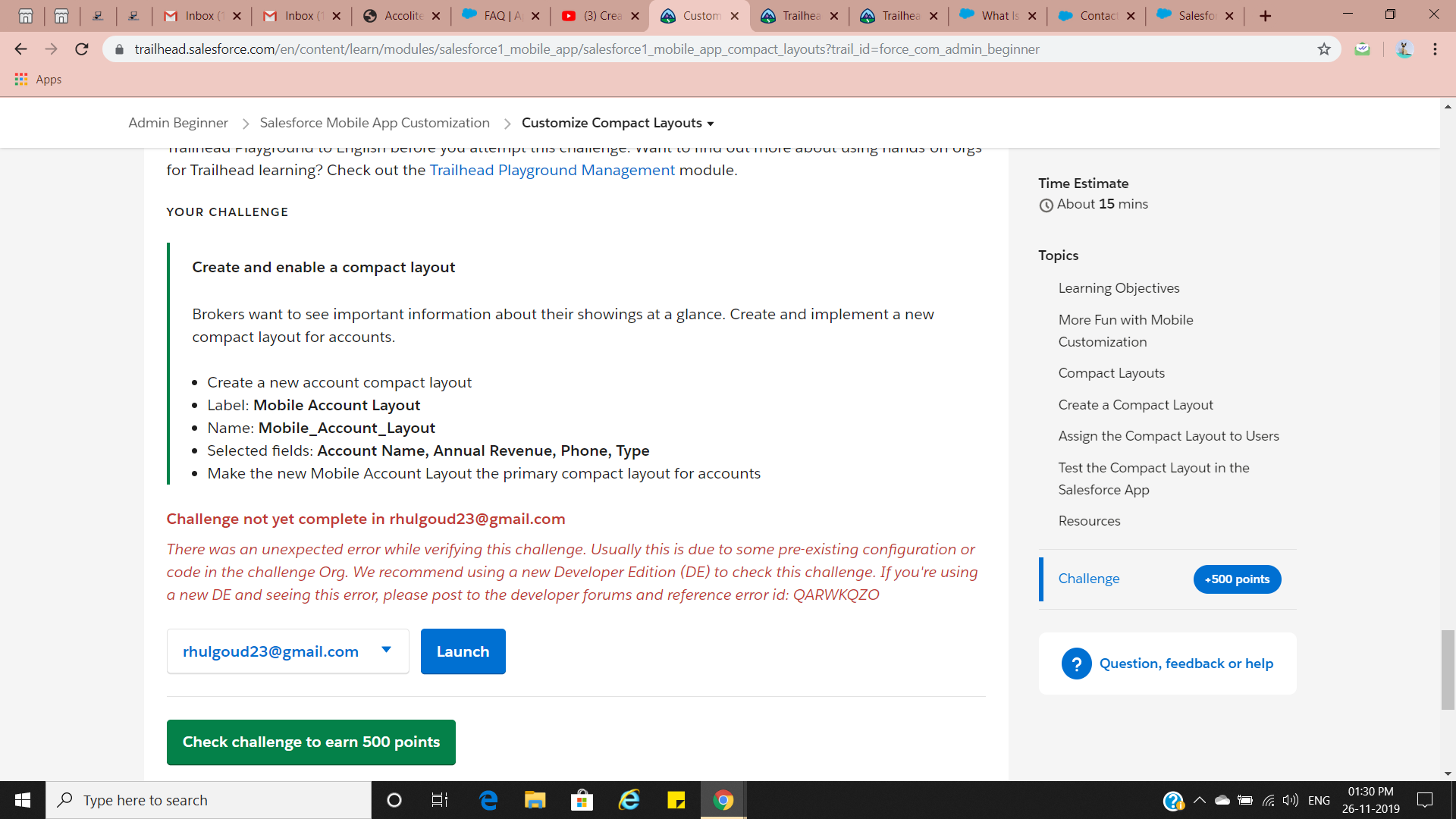 I am done almost but when i check the challenge it shows me the message please help me to complete this task.Create and enable a compact layout i am facing problem to accomplish