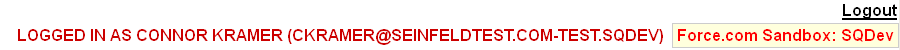 Salesforce gives you the code to put back in the "Logout" link but we want kep the "Logged in as" message. Is the code to generate this message documented anywhere? Obviously this code contains logic that checks if you are logging in as a normal user or an Admin viewing the users permission and it also tests if you are in sanbox or not.